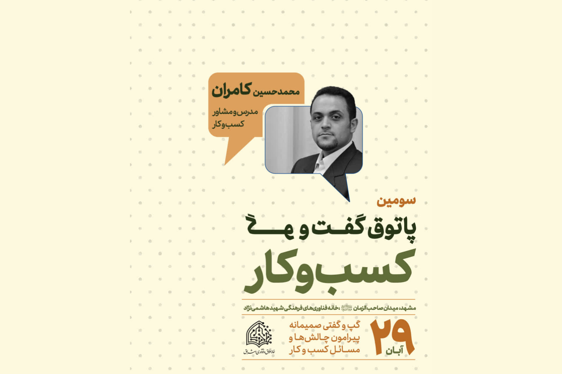 📢 اطلاعیه: سومین «پاتوق گفت‌وگوی کسب‌وکار» 🎙️ با حضور: جناب آقای محمدحسین کامران (مدرس و مشاور کسب‌وکار) 🔹 موضوع: گپ‌وگفت